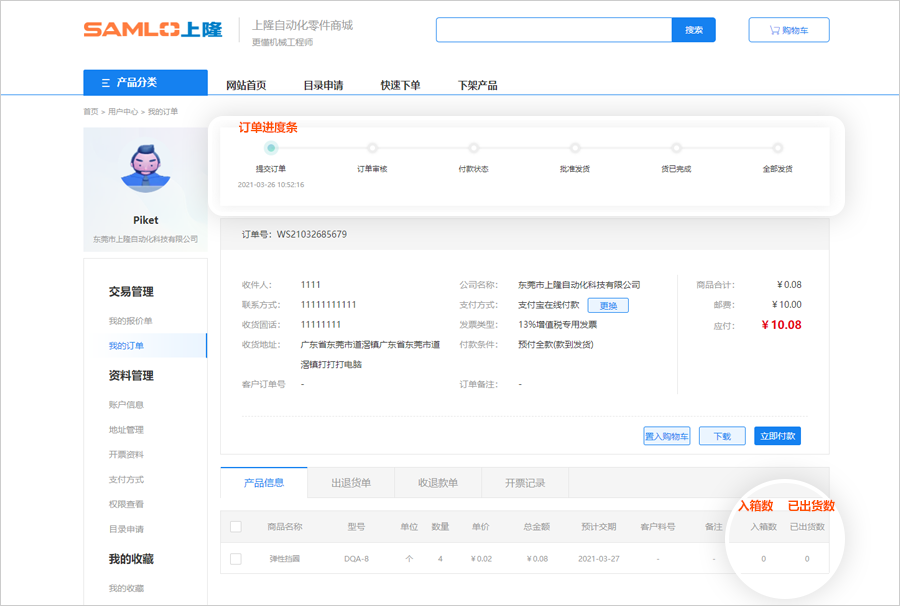1.進度條、入箱數(表示已經備好的貨物數量)、已出貨數