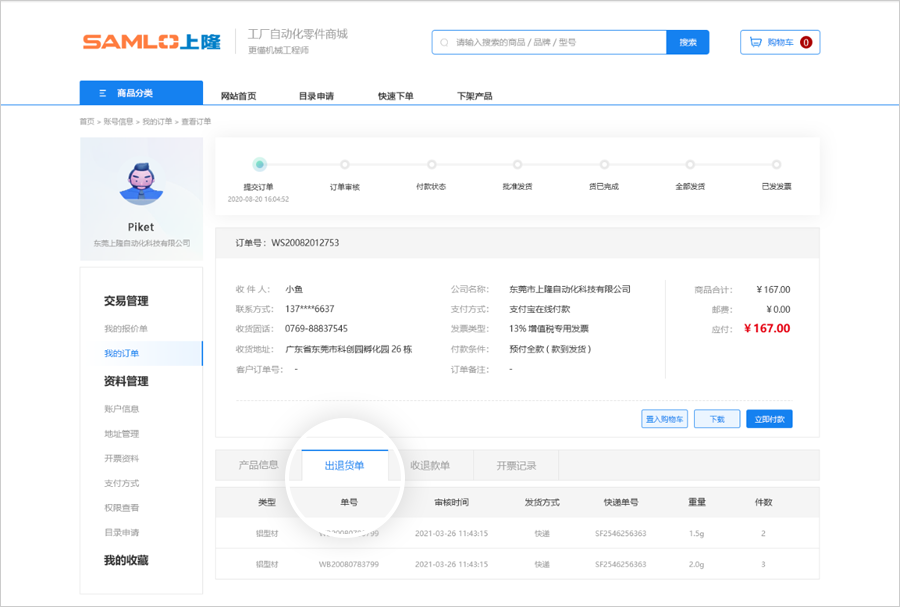2.出退貨單