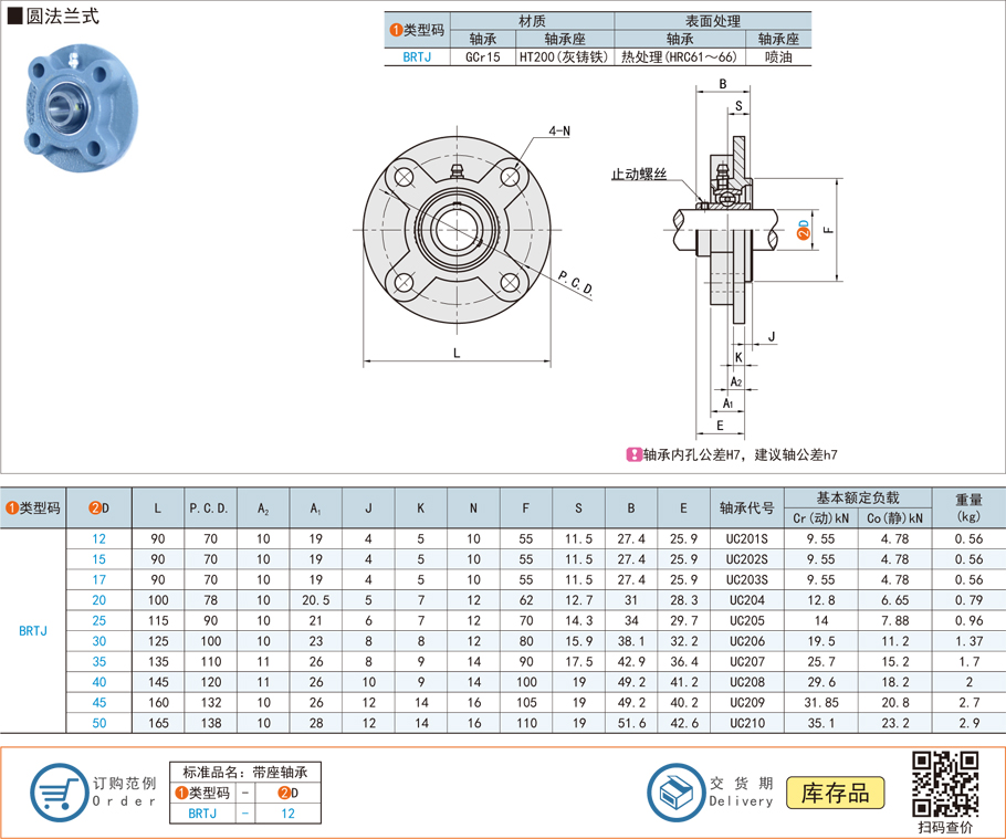 帶座外球面球軸承-方法蘭式